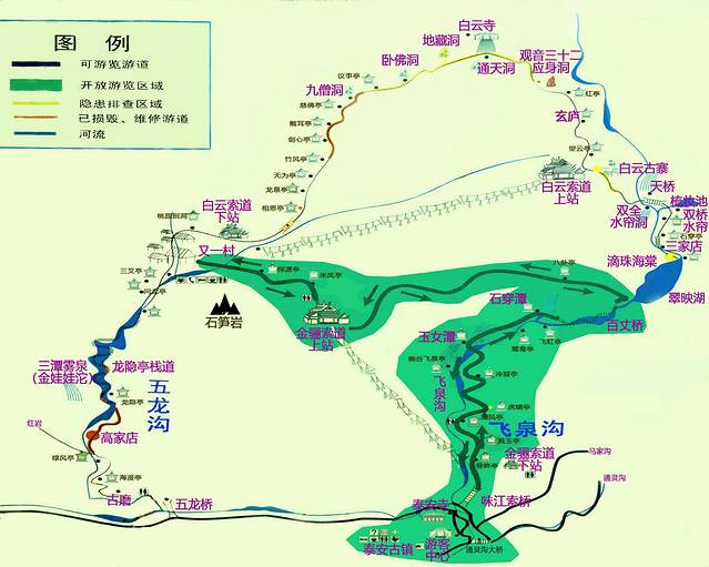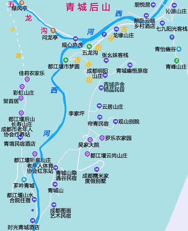 我多次登青城后山。最开始时在山上绕行一周,是从飞泉沟上山,经白云古寨上到最高的白云寺,再下山经又一村沿五龙沟下来回到泰安古镇,走了36000步。后来又两次去青城后山五龙沟里面一个叫红岩新村的偏僻山沟里度假。