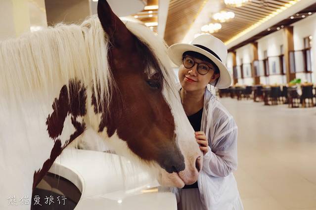 中国马镇除了有很多马的设计元素和互动元素,还能看到真真正正的世界名马!位于舞马世界主题乐园的马背情怀主题区的皇家马厩,里面汇集了世界最为珍稀名贵的18种80匹名马,在这儿可以和各种名马近距离互动,曾经以为汗血宝马已然是马中神骏,不过在中国马镇欧式风格的皇家马厩20多种名马里,汗血宝马也只能屈居第四名!