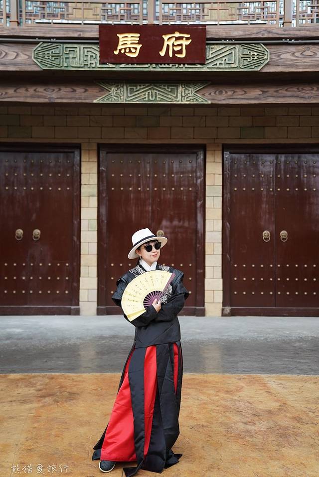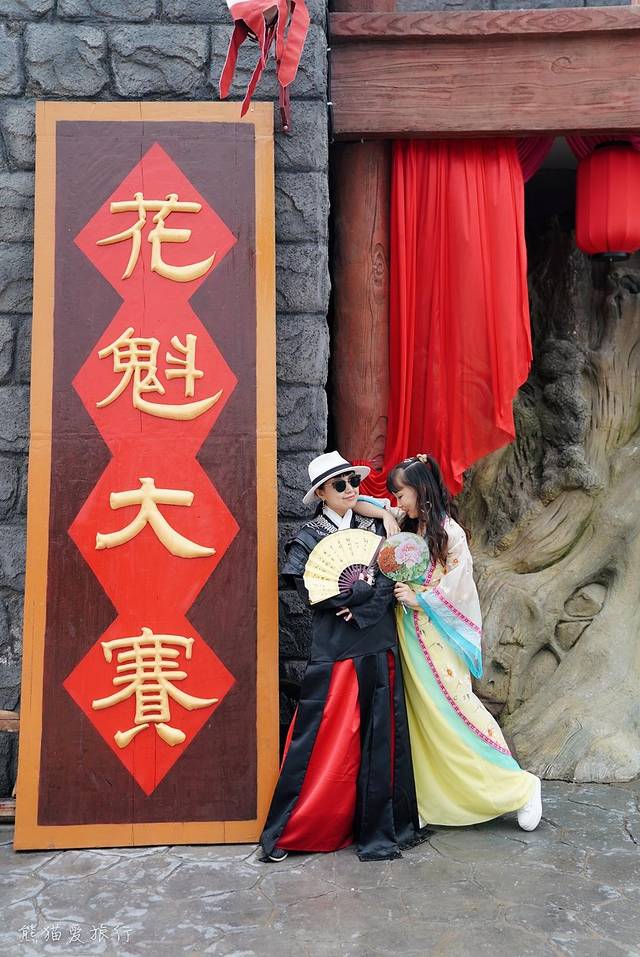 进入购票大厅,在接近售票窗口一角,有一个换装区,各种风格的古装让度假更好玩!我反串挑了一身国潮风的将军服,其他小伙伴也挑选了各种不同风格的服装,换上古装之后果然很带感,在主题乐园里的三国街区拍照瞬间刷爆朋友圈。