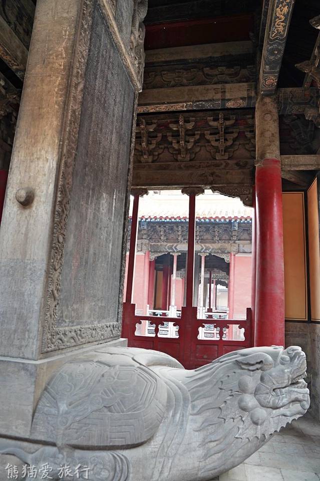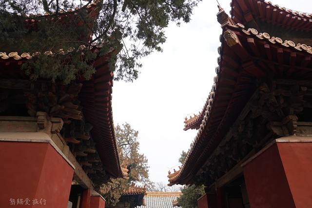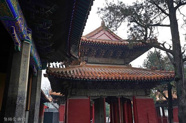 在孔庙里,我还发现了“勾心斗角”,檐与檐紧咬便是“斗角”,飞檐直插另一个飞檐,另一飞檐又横刺别的飞檐,这是“勾心。原是“勾心斗角”在孔庙是为了节省空间而创造出的一门以巧补拙的建筑美学。