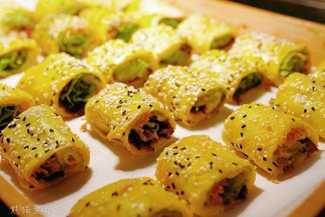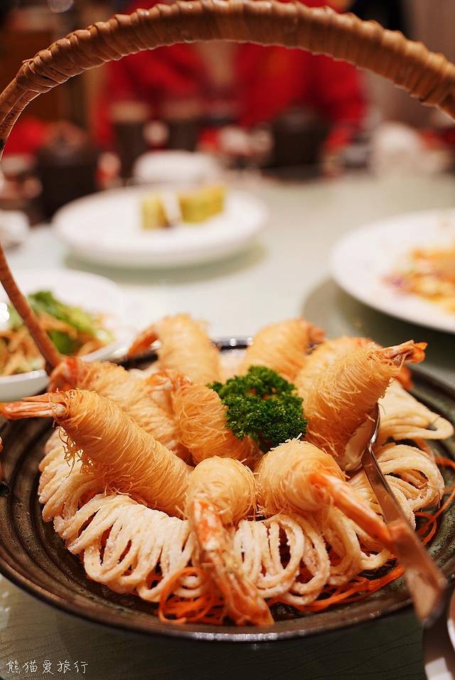 比如说“鲁壁藏书”:讲的是秦始皇焚书坑儒时,孔家后人把书藏到墙壁里的故事。香宫的这道鲁壁藏书用抻面卷鲜虾炸制而成,口感酥脆、口味鲜香。