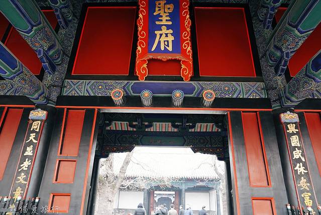 来到孔府,正在上演过大年的精彩表演!还收获了财神发的六代含怡糖!在孔府大门正上方,悬挂着一块蓝底金字“圣府”匾额,两侧的楹联写着:“与国成休安富尊荣公府第,同天并老文章道德圣人家”。