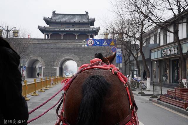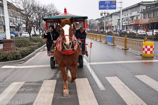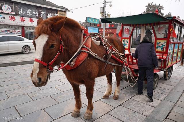 结束了孔庙和孔府的游览,坐着宝“马”小马车游曲阜大街回酒店,一辆马车可以坐6个人左右,80元起步,在满城的古香古色的氛围里,坐着马车,听着清脆的马蹄声,慢慢逛曲阜,悠哉悠哉,有滋有味!曲阜游城小马车的马可是有牌照,是唯一可以上路的马呢,它们和机动车电车行人和谐相处,互不滋扰,古典与现代融合得相得益彰!马儿们看到红绿灯会刹车,还会变道,太聪明!