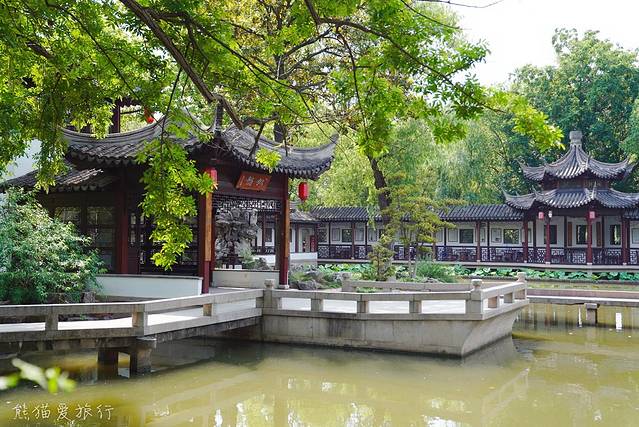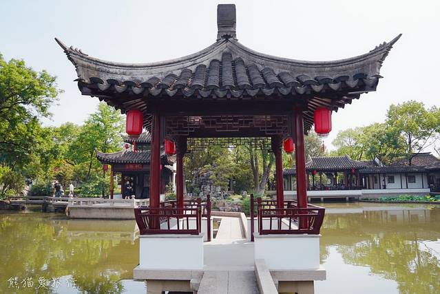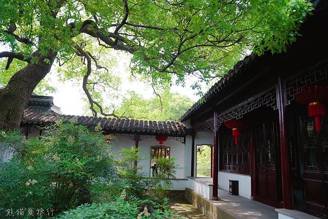 最爱倚晴园,被列入苏州园林名录,枫树、松树、桂花树、玉兰层层叠叠错落有致,夏日里绿意盎然,秋日里色彩斑斓,这里还有一座茶室。