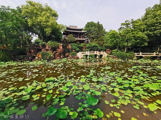 山满楼和水木清华阁中间有一大片荷塘,荷塘之后,亭台楼阁,是常熟本地人夏日赏荷的绝妙之处,虞山十八景中被冠以“曾园荷香”美名。归耕课读庐,鸳鸯式建筑,三面环水,厅北题水天闲话,站在厅内欣赏后庭的荷花又是不同的观荷视角。