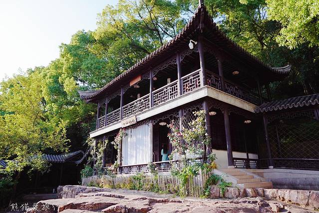 七溪流水皆通海,十里青山半入城。沿着虞山南路走到西城阁楼,进入虞山福地的牌楼,就能找到这家隐于虞山之中的七溪流水茶室。建于大石块之上的两层楼阁,廊柱上爬着蔷薇,坐在楼阁的露台上,听着犹如天籁的古琴声,品一杯普洱,读一卷书,偷得浮生半日闲。