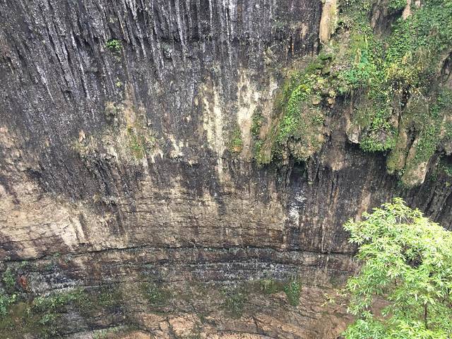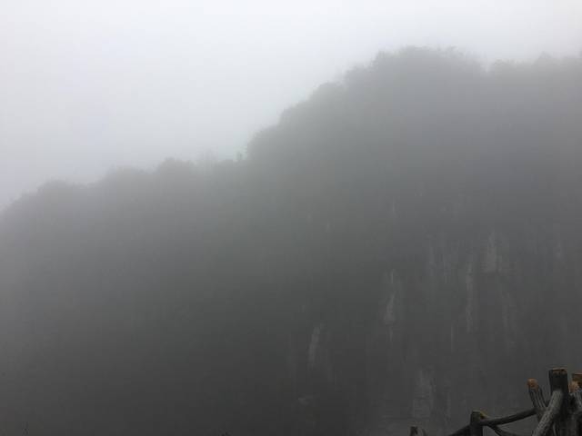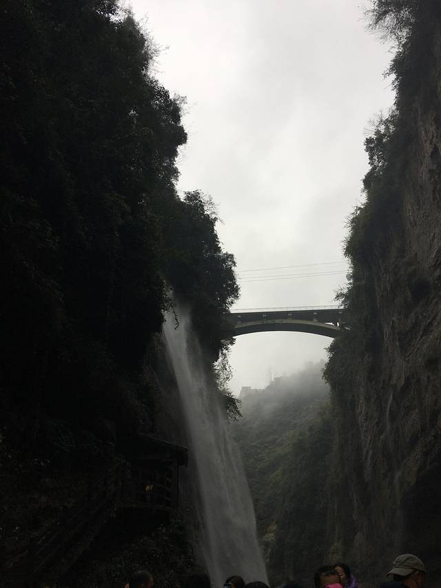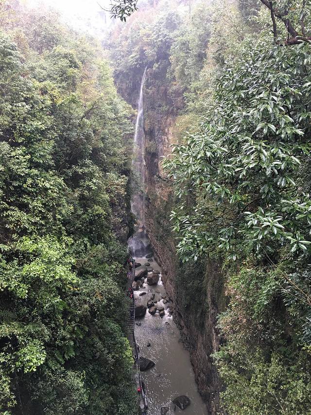 初次进入大峡谷的感受:高,险,抬头望不到天,高处的水流不断的冲击着峭壁!因为天气的原因走段路后发现发梢上全是雾水。