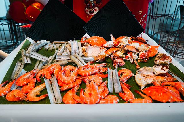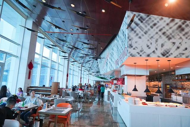 位于船头位置,全天候开放的自助餐厅,我们的早餐和午餐都选择了这里,餐品种类丰富,苏州特色美食、海鲜、甜点等应有尽有,来这里可以一边观赏湖景,一边品味美食,外面甲板上拍照也非常出片。