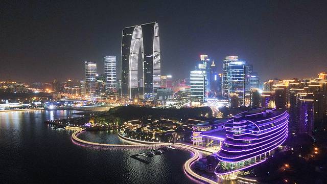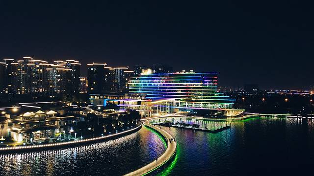 住宿选了位于金鸡湖畔的📍苏州中茵皇冠假日酒店,这是一家邮轮主题的酒店,外观酷似一艘邮轮,静静矗立于金鸡湖畔,夜幕降临,华灯初上,“邮轮“彷佛披上了彩虹外衣,色彩不断变幻流转,像极了金鸡湖畔一道亮丽的风景线。