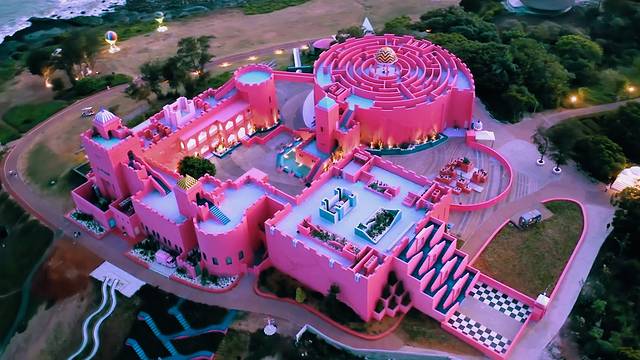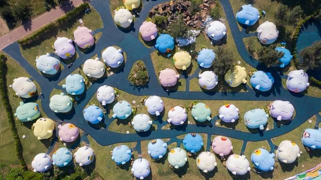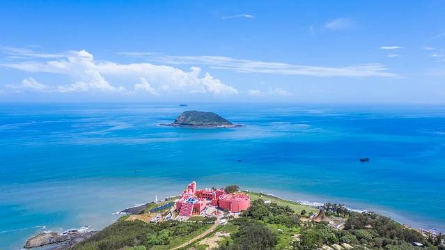 住的地方,那真的是相当少女了,海边的小木屋,听着潮汐声入睡,马卡龙泡泡屋,跟天线宝宝做邻居。如果你觉和我一样,得不够符合你硬汉气质的话,至潮至in的房车,你可以试试。临走前别忘了去海誓山盟台,有无人机的话来个航拍,给未来的ta,在爱心礁石上比个心,也让丘比特看见,别再让他用你的爱情之箭去烤串儿了。这次唯一的遗憾就是,没去滑旁边的网红滑梯,因为我觉得,它可能塞不下我这185这么大一坨吧。