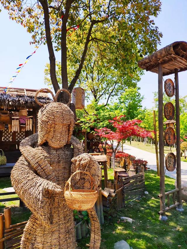 接着游览国家4A级旅游景区--【董永七仙女文化园】,这里的建筑为汉唐风格,建有董孝贤祠、古戏台、天仙茶馆、十八里亭、老槐树、凤凰池、丝缫井等24个景点。走进文化园《董永与七仙女》,双人站像,首先映入眼帘,雕像高6.8米,台高2米,是由中国美术学院潘锡柔教授设计的。