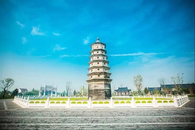 位于古镇的南面,是唐代建筑物,在绿树掩映重默默伫立着,映衬着蔚蓝的天穹,高耸入云。