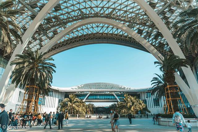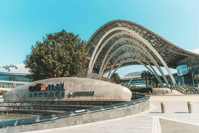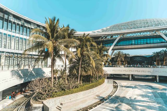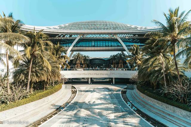 国际免税城位于 三亚 海棠湾,整个建筑比我想象的要大很多,果然“全球最大规模免税店”的头衔不是浪得虚名。玻璃网格流线型建筑加上众多椰子树,让整个免税城都充满着浓浓的海岛气息。