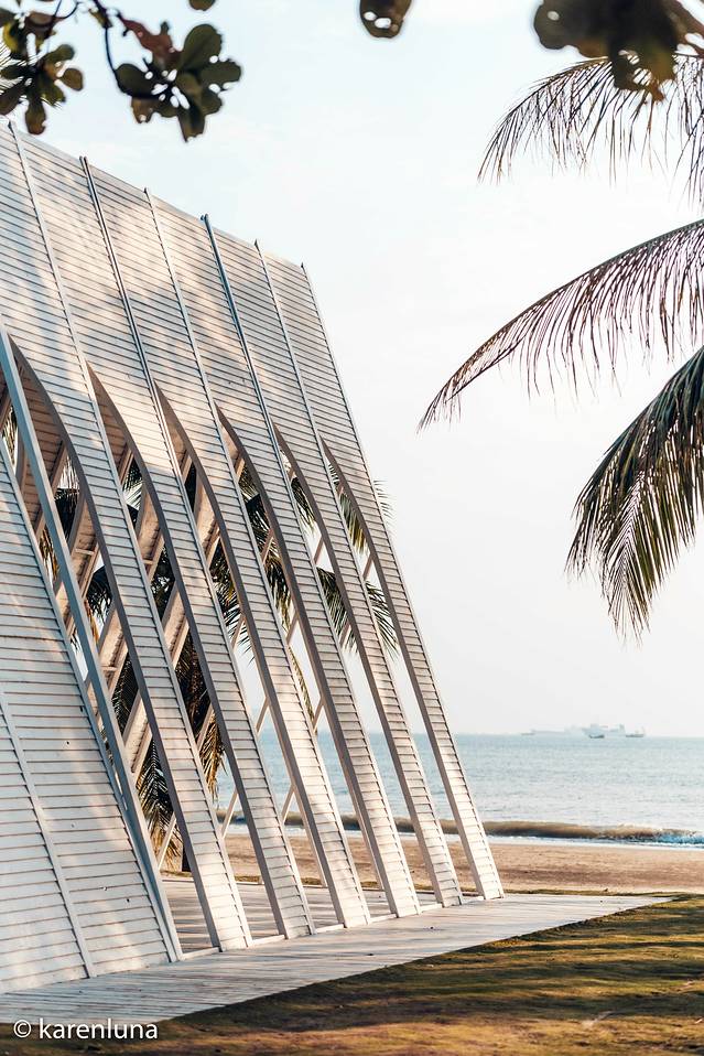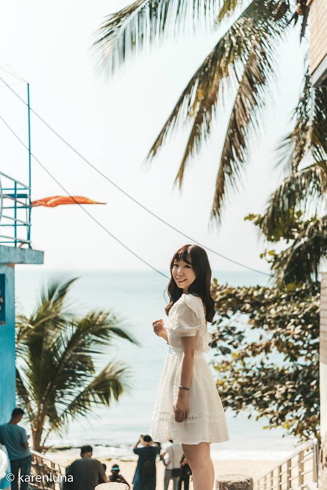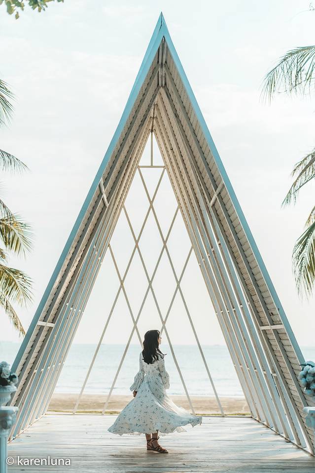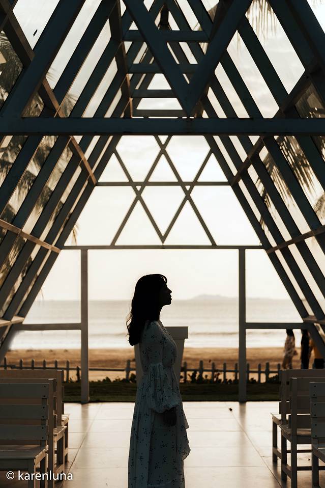 最先看见的是在绿色椰林下的白色尖顶教堂啦。走进白色木质结构搭起的镂空教堂,有种 巴厘岛 既视感。伴着日落前夕的余晖,不管是逆光拍剪影,还是测光拍光斑,都唯美到不行!忍不住在教堂里转圈圈,裙摆顺着海风飘扬的感觉,自己都觉得好仙~