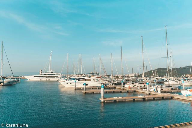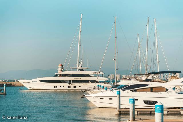 记得第一次看到游艇还是在10年前 瑞士 图恩 湖畔的 施皮茨 小镇,当时觉得依山傍水的小港口一排排白蓝色的小游艇好像仙境。没想到在10年后的今天,在自己的国家也看到了如此宁静文艺的景象,真的好开心!