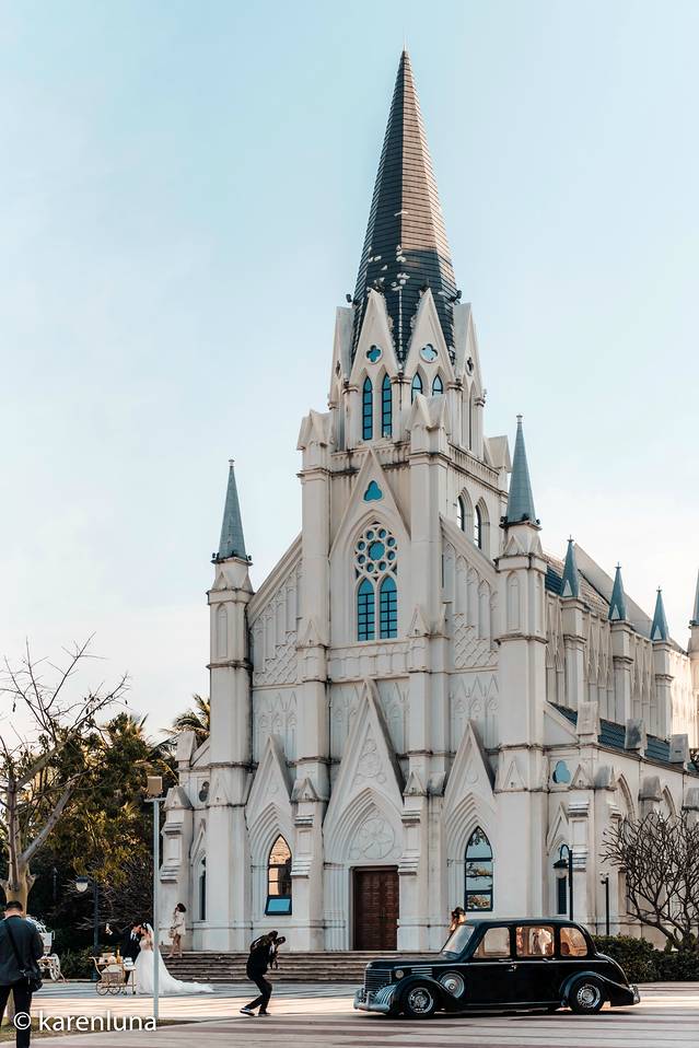 个人认为最最好看的就是入口小广场处的欧式教堂了。灰顶白墙,再加上百花窗,真的与 欧洲 那些教堂们无差!前面的小广场上还有零星几辆老爷车,拍照一定特别有范儿。不过在这里拍婚纱的新人们也不少,需要排队等待拍照。