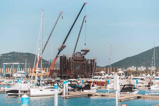 半山半岛帆船港就位于吉庆广场的对面。因为当晚有个跨年演唱会,所以不同于平日的岁月静好,今晚的帆船港真是热闹非凡。
