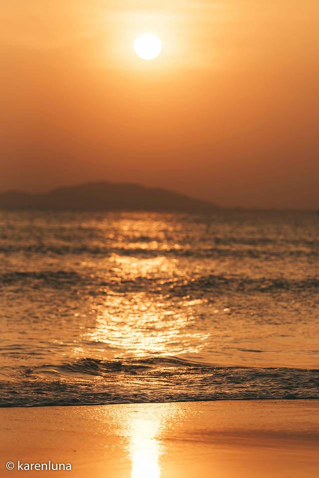 不知不觉,散发着橘色耀眼光芒的太阳慢慢落下,夕阳的余晖洒向海面上、洒在沙滩上、洒在人们的身上,让眼前的整个世界都变得绚烂唯美!