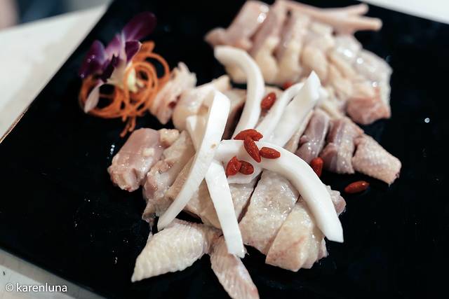 而鸡肉则是正宗 海南 果地散养超180天的 文昌 鸡,当天凌晨宰杀后8小时内就要送到餐厅,保证鸡肉的新鲜。剃了大骨的鸡肉在下锅3分钟后就可以食用啦~咬上去真是相当嫩滑,而且每一块鸡肉上都会带一小块鸡皮和一点点肉筋,让吃下去的每一口口感都更加精益求精。