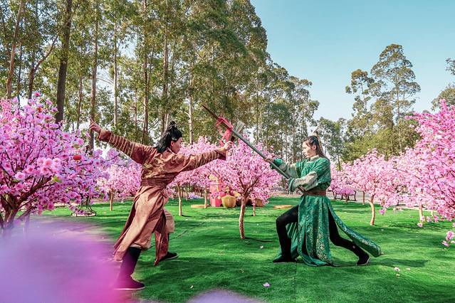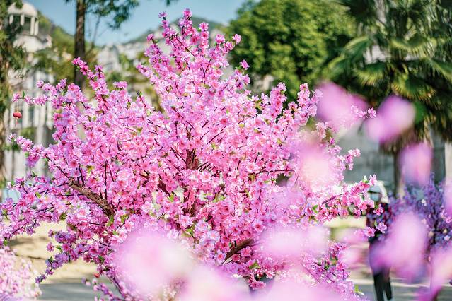 西樵山国艺影视城今年海特别策划了武侠桃花岛,宛若真正热烈盛开的桃花,非常梦幻唯美。
