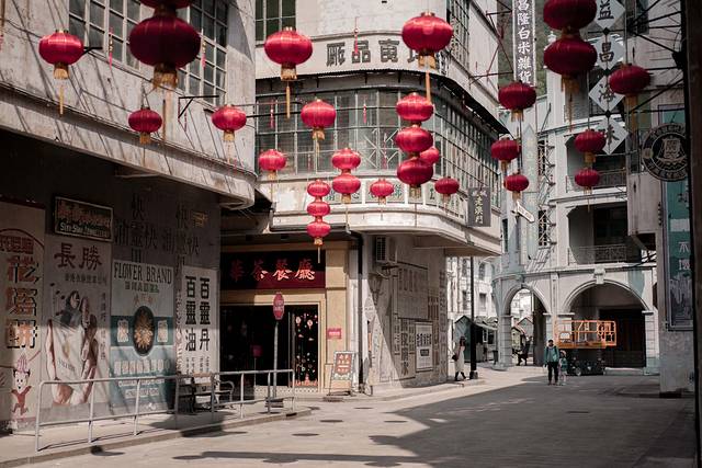临近春节,街道上很多地方都挂上了红灯笼、红飘带等装饰品,看起来喜气洋洋,在怀旧复古中带着热闹欢喜。广州街上的天字码头、十三行、粤海关,西关大屋等这些广州人都耳熟能详的地方都有,让人有一种漫步上世纪广州街头的感觉。香港街的上世纪香港岛的建筑很有故事感,有很多电影和电视剧里的画面在这里都能看到。
