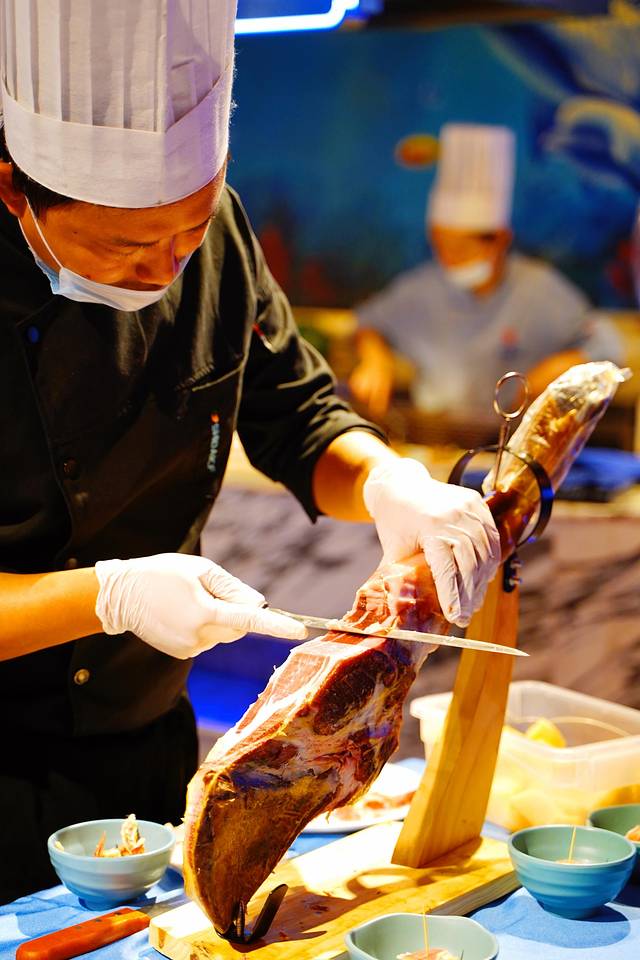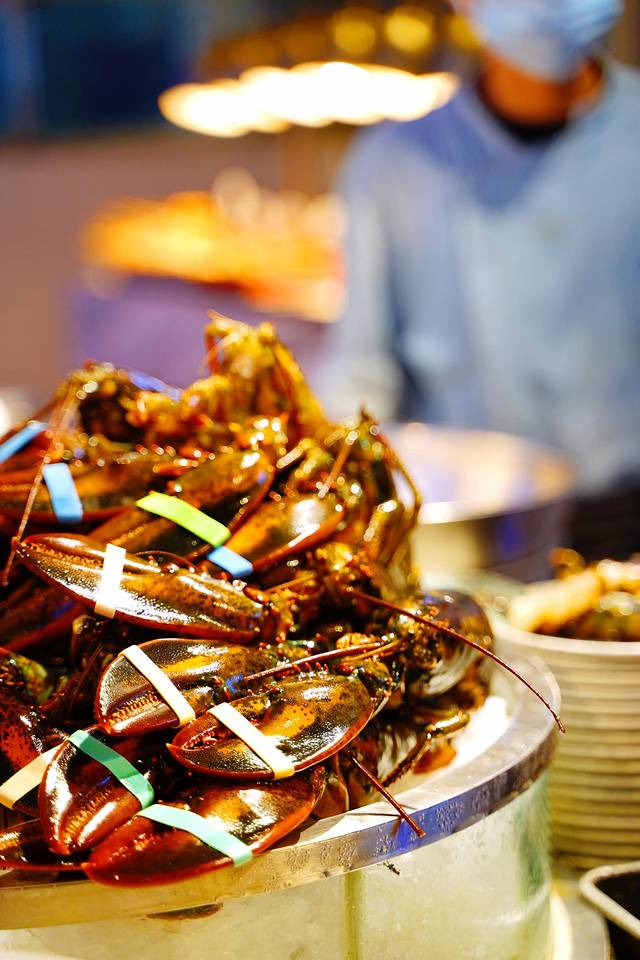 最值得一夸的是这里的菜品很多,主打海鲜自助,所以有很多海鲜的种类。食材品质很高都非常新鲜。什么帝王蟹、波士顿龙虾、罗氏虾、鲍鱼等高档海鲜都是无限量供应的。