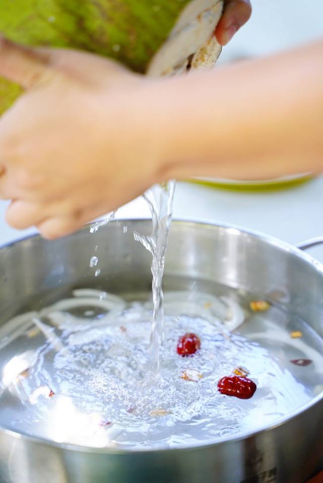 现开三个新鲜椰子做汤底,满满一锅散发着自然的清香味,如果喜欢甜口的可以让服务员不要加矿泉水。