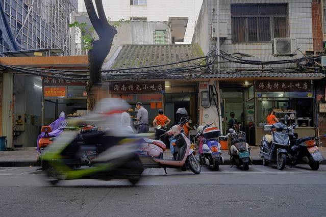 这里都是本地人居住,马路边停放最多的就是电瓶车。除了各种本地小吃之外,这里还有很多小酒店,有点像以前我们大学后门的样子。市井味很足,也很有人情味儿。