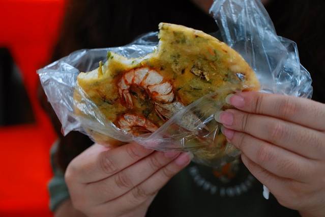 酱爆虾饼,活虾+煎饼,吃起来带有海鲜香味的葱油饼噢,感觉用料很实在啊~
