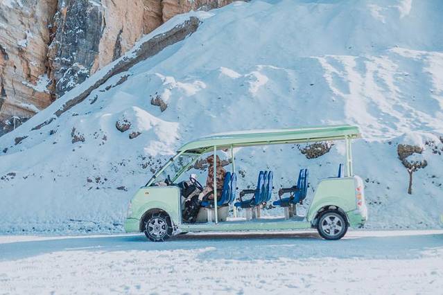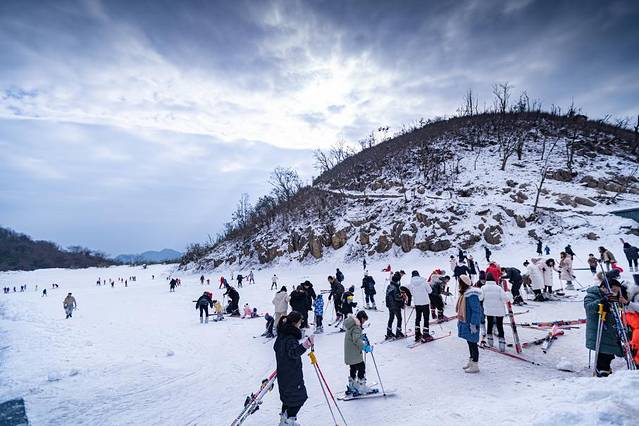 乘坐第二段索道后可直接乘坐观光车到滑雪场,在滑雪场里可以看见英姿勃发的滑雪老手们熟练地穿梭在宽阔悠长的滑雪场里,也可以看见新手们慢慢悠悠的在滑雪场上学习新技能,不时的还会结结实实的摔在雪里