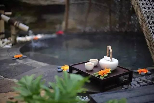 悦椿温泉是低矿化度的碳酸温泉,含有大量对人体有益的微量元素和放射性元素,水质缓和,色味较淡,为偏硅酸泉。另外,温泉水质中也含有微量含镁的硫酸盐泉,是当地为数不多的可浴、可养、可饮的温泉之一,长泡可改善高血压及动脉硬化。私密房间泡池、自然森林泉眼和专业院落SPA相结合。在旅途劳顿之后,品尝美食、身浴水中,灵魂在碳酸泉中滋养,身体在特色美食里颐养。与亲人游走在田野山林之中,也做一回地道的温泉村“村民”,让心灵得到欢愉和满足,健康自然与田园气息一起融入万物之中。
