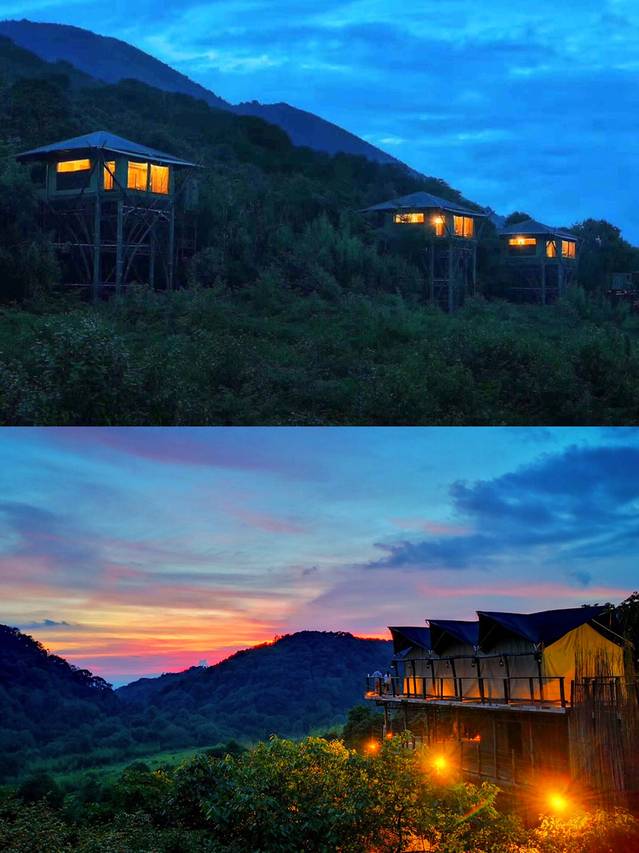 帐篷外沿还有宽阔的户外就餐区域。置身其中,犹如悬在空中一般,就着树梢的绿意🌿慢慢的品味着盘中的佳肴。