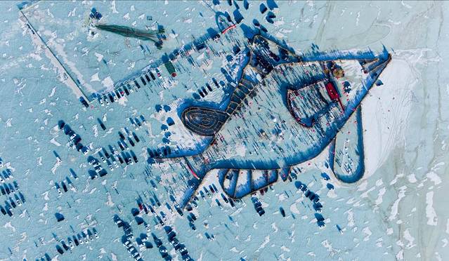 该处航拍点,距离拍摄位置很近。由于拍摄图案很大,需要飞到500米的高度进行拍摄。