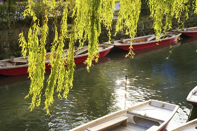 舟游柳川是最好的方式,指的是乘坐小船沿着河道的游历,有数条航线。小船形似五道鱼,头戴斗笠、用竹篙撑船的船家唱起船歌,颇具地方风情。柳川人为那些文人立下了32块文学碑——诗碑、歌碑、句碑,都立在河道的岸边,船家会遥指它们向游客介绍。如果时间和体力允许,建议沿着河道边的“水边散步道”,再来一次文学散步。