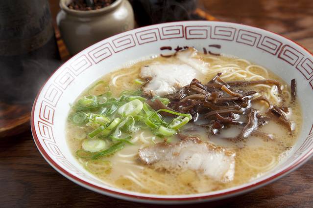 在熊本的众多美食中,最著名也是最受欢迎的,非熊本拉面莫属。熊本拉面采用豚骨配制鸡肋骨熬制而成白浊汤头,清爽可口。细直的面条搭配黑木耳和烤大蒜片以及麻油,其独特的风味让人一尝便难以忘怀。香气十足的烤大蒜片口感略微发苦,让人食欲倍增。