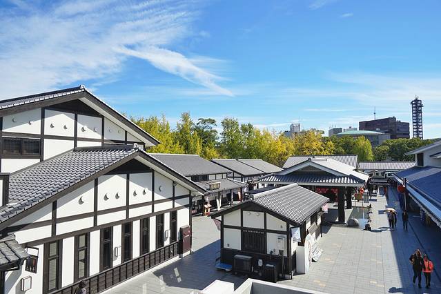 在城彩苑,可以感受到满满的熊本魅力。当然各地的美食也聚集于此,可以在用餐处惬意品尝美食,也可以边走边吃,欣赏城下町的怀古风情。这里有能体验感受熊本历史和文化的“涌涌座”和供应熊本当地小吃及土特产的“樱之小路”。园区内重现了江户时代的城下町街景,在这里漫步别有一番情趣。