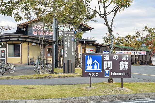 JR阿苏站里也少不了各类与kuro狗狗相关的设计,有一处为kuro设计的站长室,供游人拍照。车站旁的“道之站阿苏”综合咨询处有中文咨询,还可以暂时寄放行李。从这里开启我们的阿苏之旅,第一站便是阿苏地标建筑阿苏神社。