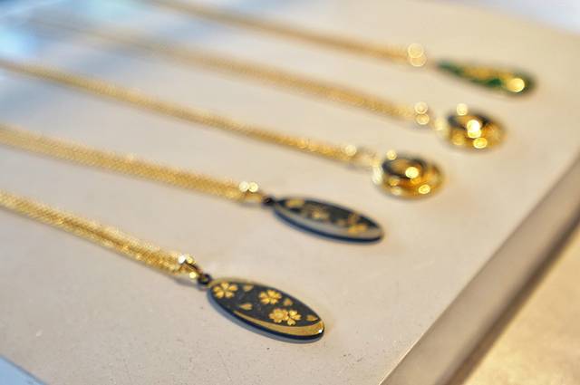 肥后象嵌光助店内还陈列着由肥后象嵌而成的装饰品。肥后象嵌就属于金工象嵌的一种,因为象嵌在图案当中的金银不掺杂任何其他材料,也不使用颜料,所以肥后象嵌可以把金银的魅力发挥得淋漓尽致,能反映出武士文化的厚重感及优雅之美。肥后象嵌和熊本城一样,都拥有400年以上的历史。