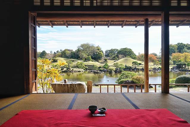 成趣园最有趣的,在池东的山丘区。这一带据说是模仿自江户时代的江户日本桥至京都三条大桥之间的东海道风景(东海道五十三驿)建造而来的回游式庭园,园中还可以体验茶道。