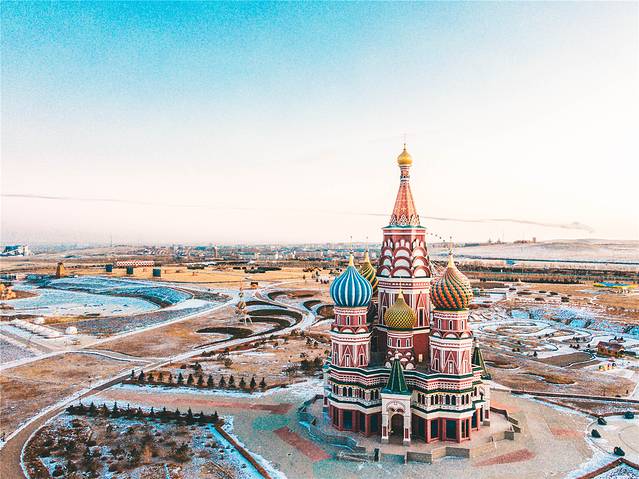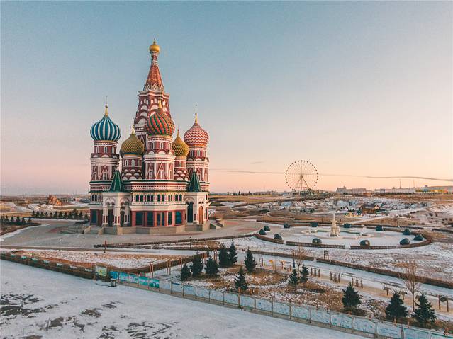 驶下高速时就会看到不远处的猛犸象公园,让我犹如坠入雪中童话世界的感觉,当然少不了这个公园,虽然公园没有开放,但是在大门处就能看到那座彩色搭配的城堡建筑,极具 俄罗斯 风格的洋葱头在城堡顶部。