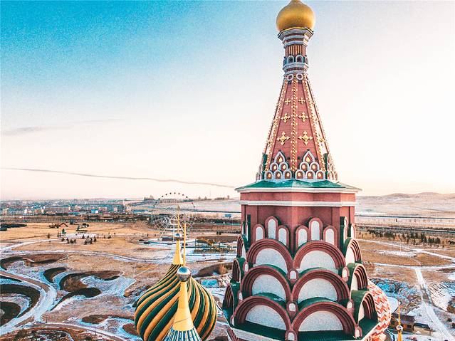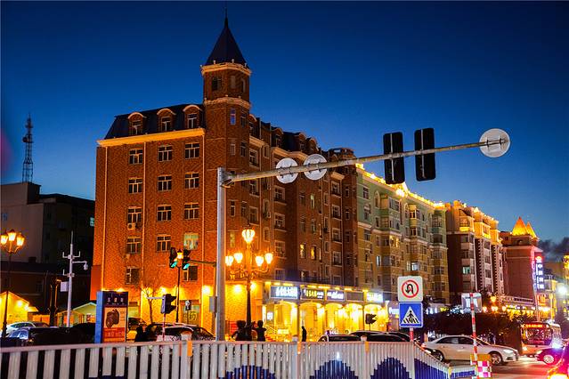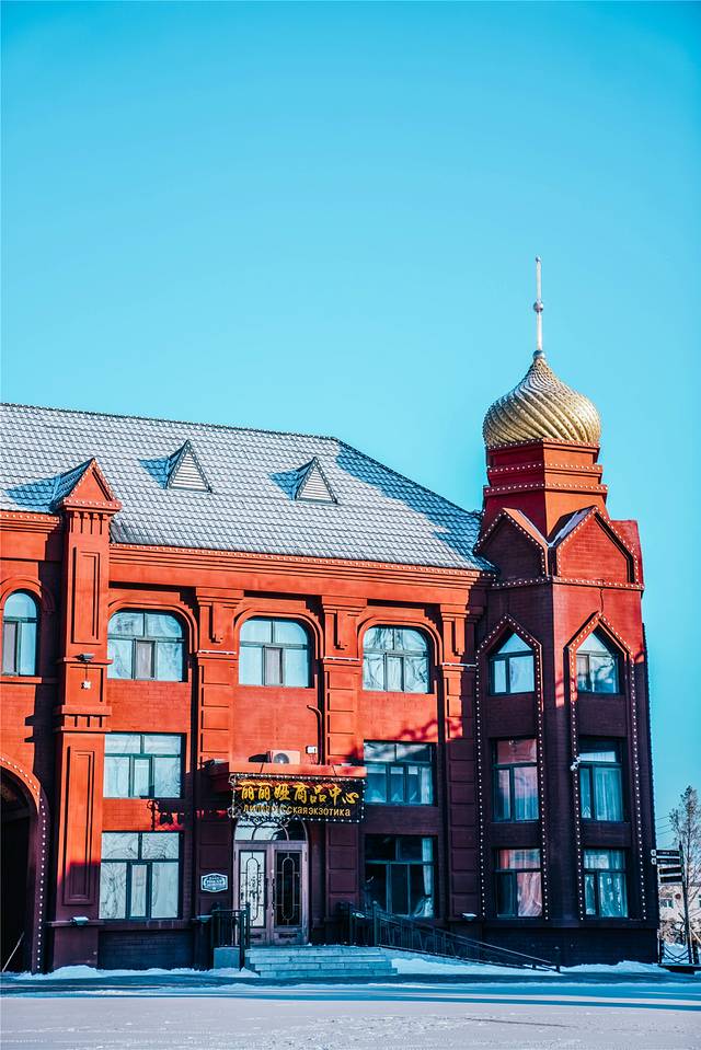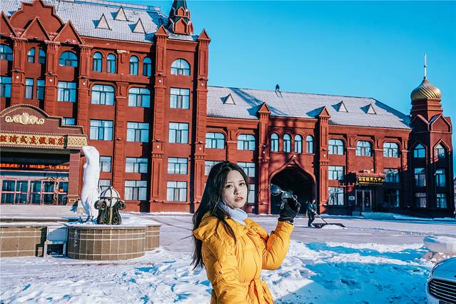 满洲里 这个边境小城并不大,街道却是整齐地划分好,方 方正 正的十二条街道让人觉得井然有序,车辆快速地从城市街道奔驰而过,卷起了堆积在道路两旁的积雪,坐落在街道旁的建筑同样吸引人眼球。