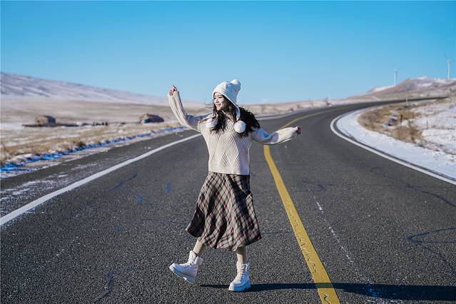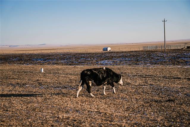 在雪原上还有牧民们放养的牛群和马群,它们或许会从油柏路上经过,远远看见这些小可爱就开始放慢车速要给它们让道。