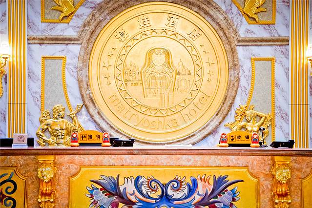 卡通形象的套娃常常让人觉得脸盲,和广场周边大大小小的套娃模型相比,套娃酒店巨型的套娃外观就不得不让人佩服建设者的脑洞。玻璃外墙在白天看就是颜色显眼的套娃图案,到了晚上则会变幻出炫目的彩色亮光。