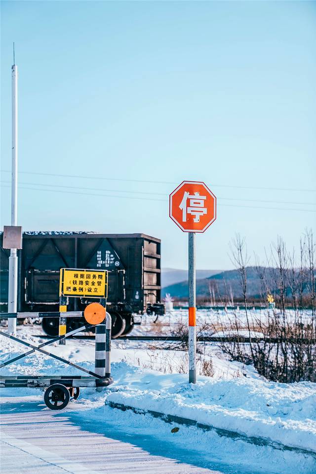 火车轨道和我们行驶的道路中间隔了一片白桦树,铺满积雪的轨道让人想入非非,仿佛传来呜呜呜的火车声,向着雪国的方向驶去。