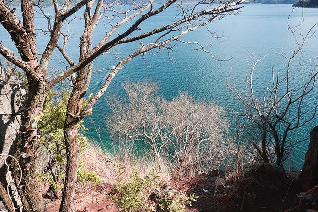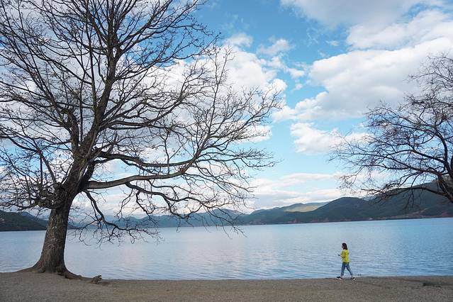 它们坐落于湖边,自从生长出来就一双一对,像亲密的伴侣,如胶似漆。是摩梭爱情的象征。有没有发现左边的树顶好像缺了一段,曾经有一对情侣在此发誓彼此忠守爱情,没想到其中一方出轨了,于是雷劈中了其中一棵树。所以......你们懂得,对待感情,要忠诚。
