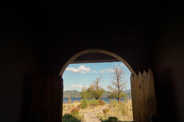 大落水村是泸沽湖周围最早开放的村庄。这里的设施相对齐全,整个村庄都是摩梭人的木楞房。没有一颗钉子,也没有一块瓦砖,还特别容易仿震。店铺比较齐全,有很多特色纪念品小店和饭馆,不少打着“摩梭人家”的餐馆都是可以进去体验一番。