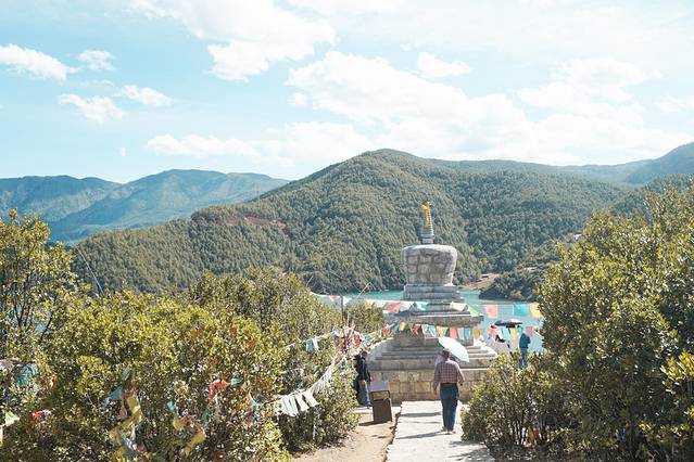 沿着小台阶,我打算走去白塔前转圈。师傅说,白塔前顺时针转三圈,好运都会来。记得要顺时针,别弄错方向了哦!
