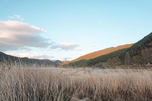而走婚桥横跨在草海之上,长约300米。摩梭族奉行“男不娶,女不嫁”的走婚习俗,而走婚的时候都会必经这座桥,所以这座走婚桥又称“天下第一鹊桥”夕阳西下之时,迎着最后一抹余辉,在黄绿之间构创出一副唯美的画面,温馨而浪漫。