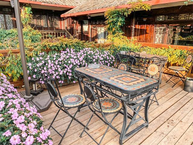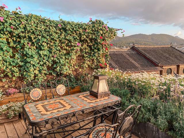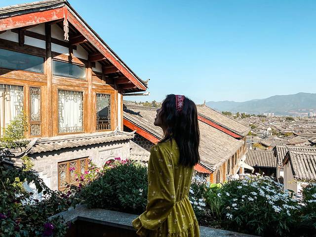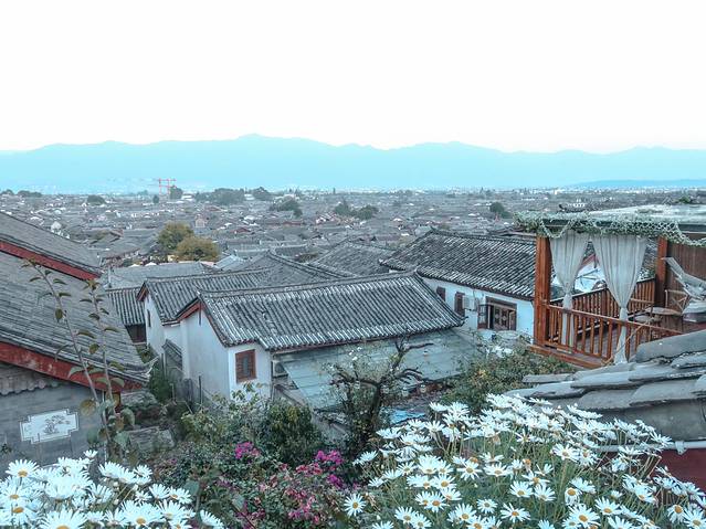 走上露台,视野瞬间开阔起来,极目远眺,还可以俯瞰整个丽江古镇