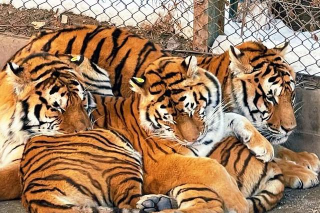 可能是东北的冬天太冷了,东北虎都有点消受不起,大家都在抱团取暖,还有那懒洋洋的在晒太阳。感觉它们虎头虎脑的,肥嘟嘟的。像一只大橘猫,萌萌哒。
